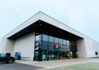 Op 1 december 2023 opende Topsport hun nieuwste vestiging aan de Mechelsesteenweg in Dendermonde. Het nieuwbouwproject heeft twee verdiepingen, goed voor in totaal 3000m2, waarvan 2000m2 winkelruimte. Het pand van Topsport belichaamt de kernwaarden van moderne architectuur: esthetiek, kwaliteit, duurzaamheid en comfort. Door deze aspecten op harmonieuze wijze te integreren, creëren we een unieke winkelervaring voor de klanten van Topsport en een aangename werkomgeving voor de medewerkers van het bedrijf.